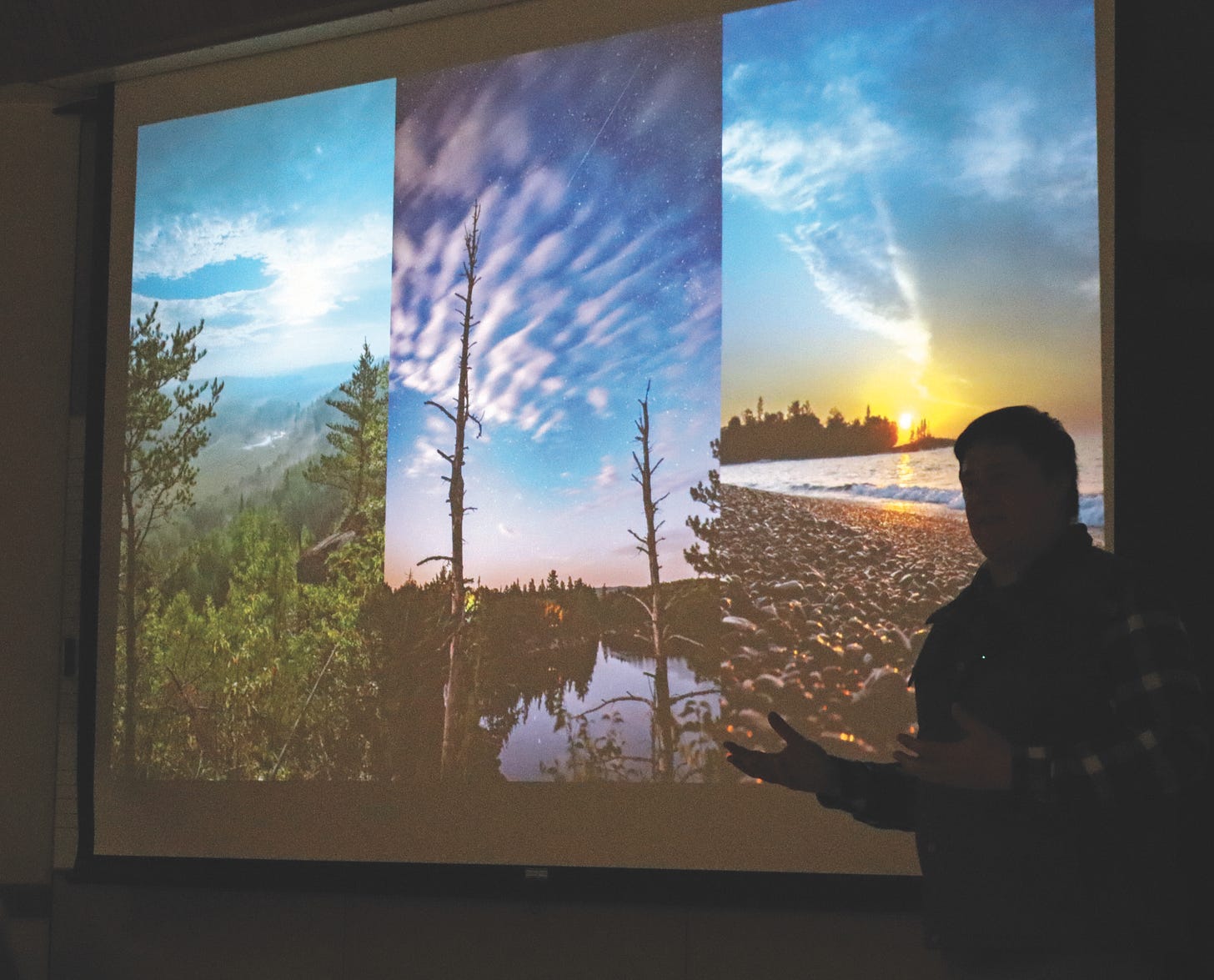 “In a captivating presentation by Benji Inniger on Feb. 6, he discussed his love and appreciation for his wildlife project Bold North, and his current gallery exhibition, Humans Don’t Exist. Inniger shared how these projects show that humans take away the authenticity and natural beauty of landscapes, and the realization ultimately led to his decision to document wildlife” (p. 1).